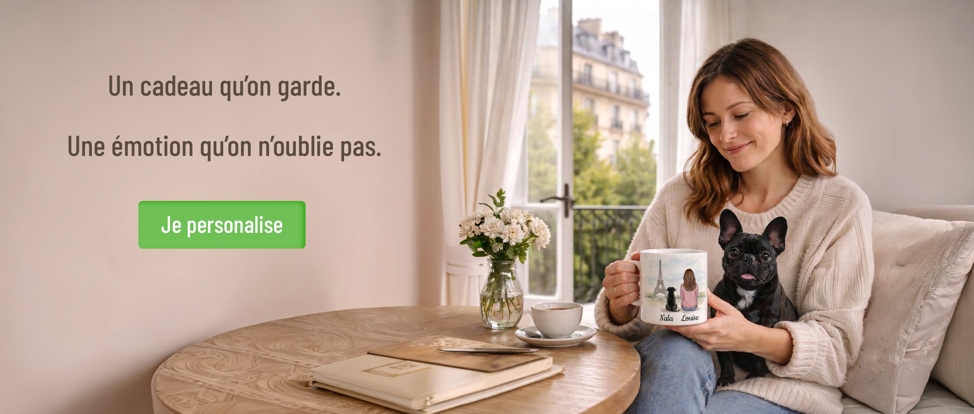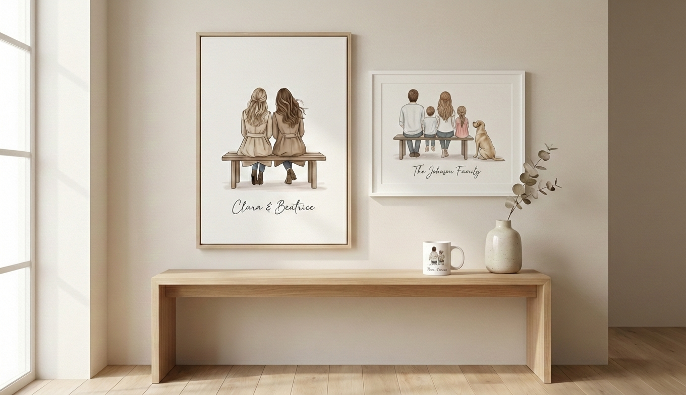 J’ajoute les prénoms et les détails pour créer un cadeau unique.